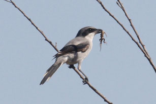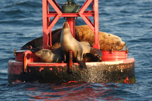 Within minutes of landing on Santa Cruz Island, we spotted the first of the endemic Island Scrub-Jays, followed immediately by the endemic subspecies of Loggerhead Shrike. The shrike dropped to the ground while we were on it and came back up with a small lizard in its bill. After this, we quickly picked up several more of the endemic subspecies, including Song Sparrow, Orange-crowned Warbler, Allen's Hummingbird, and Bewick's Wren, nabbing six of the nine possible endemic birds. We spotted a couple of nice vagrants on the island, including a Green-tailed Towhee and a Clay-colored Sparrow. On boat trip back to Ventura, we saw more Black-vented Shearwaters, and both Common and Bottle-nosed Dolphins. The last surprise of the day was a Steller's Sea Lion hauled out on a bell buoy just outside the harbor. The California Sea Lions on the buoy gave us a great comparison of these two species. Steller's Sea Lions are rarely seen this far south.